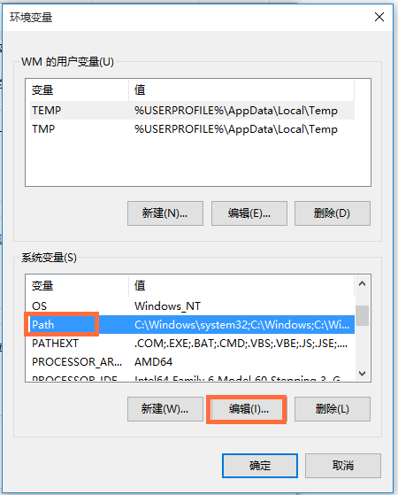 注意,不要删除原来Path的变量值,直接在后面输入代码,点击确定,