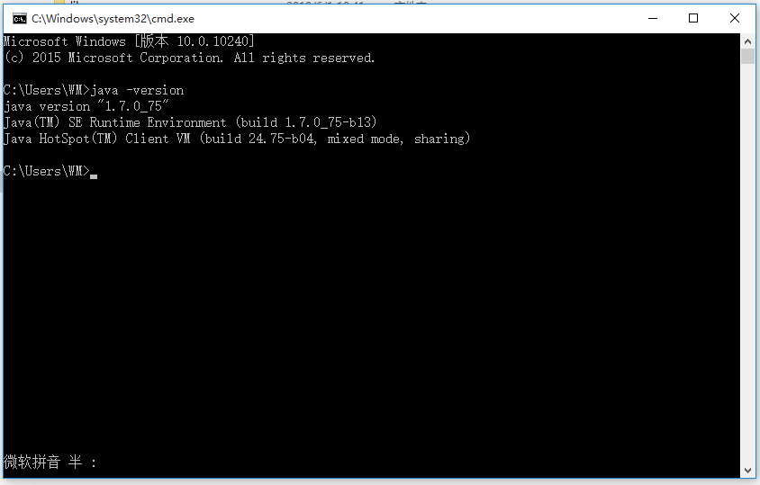 输入java -version(java 和 -version之间有空格),出现如图信息,说明配置成功了。